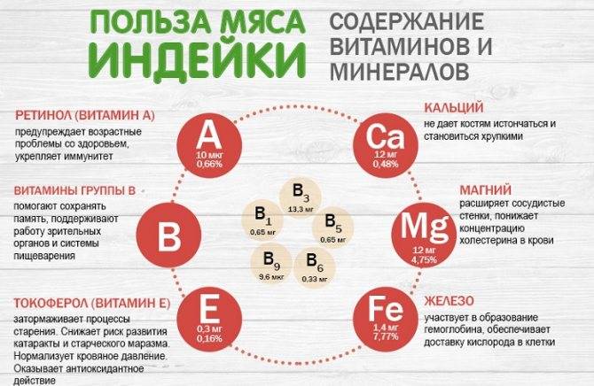 Полезные минералы и витамины в составе мяса индейки.