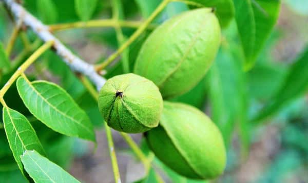 В отличие от своего сородича грецкого ореха, пекану нужен жаркий, влажный климат Мексиканского залива. Высокое (25–60 м) листопадное дерево плодоносит около 600 лет!