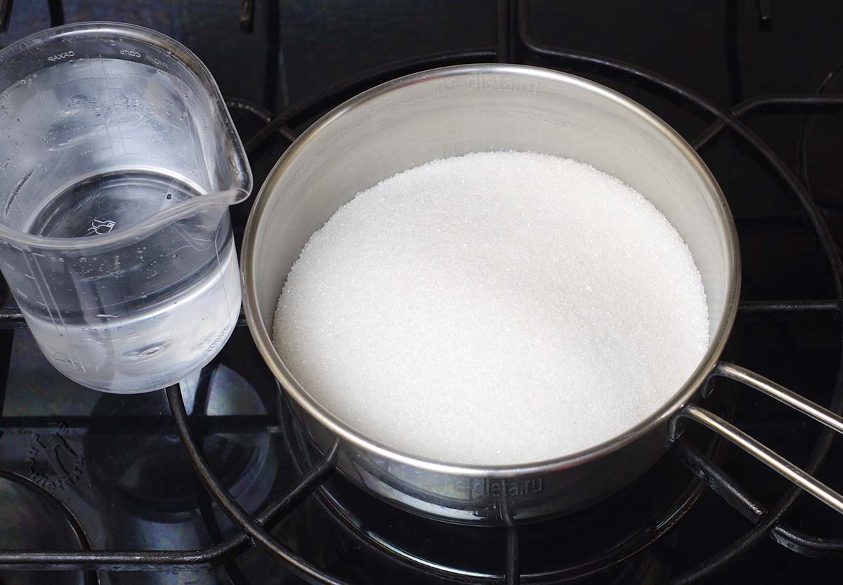 4. Затем по прошествии времени необходимо сварить простой сахарный сироп из равного количества сахара и воды.