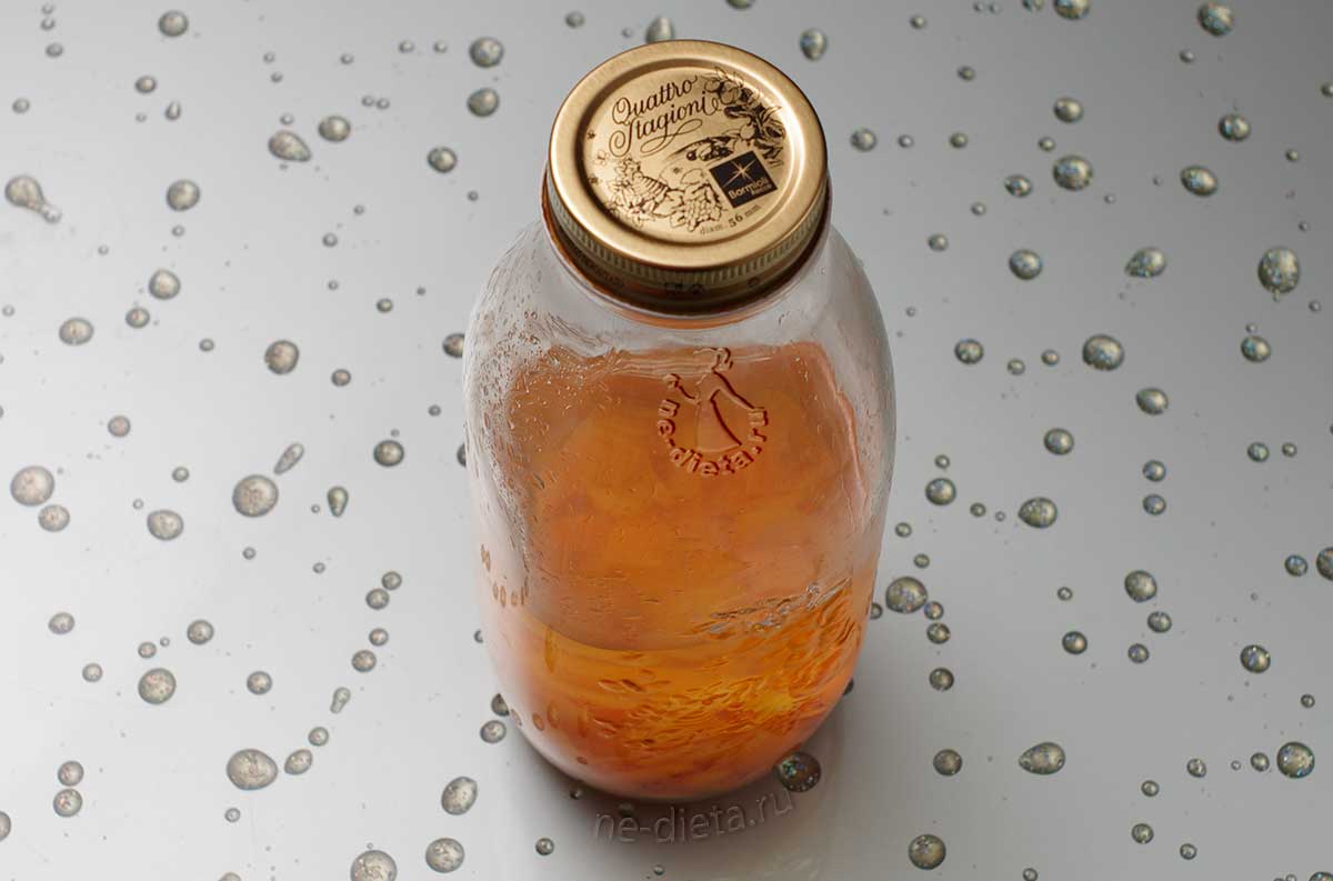 Герметично закручиваем винтовой крышкой или закрываем капроновой. Ставим банку в темное сухое место (в кухонный шкаф, к примеру) на 7-10 дней. Каждый день нужно вспоминать о будущем цитрусовом ликере и трясти банку, чтобы цедра лучше отдавала свой аромат, а мандарины — сок.