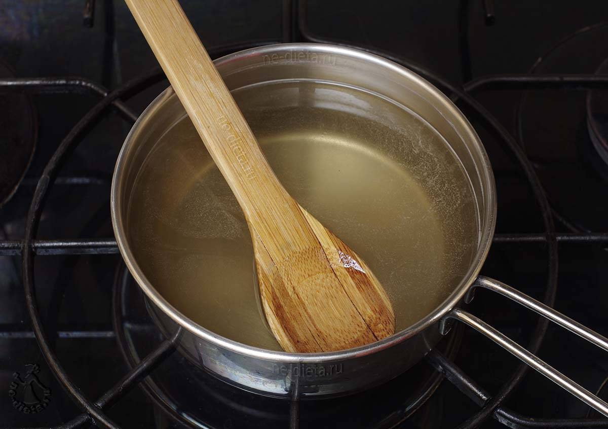 5. Для этого воду с сахаром надо довести до кипения на среднем огне, периодически помешивая, чтобы сахар полностью растворился. Затем сахарный сироп нужно полностью остудить.