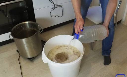 5) Если это будет брага из зеленого солода, то сусло следует незамедлительно охладить до 27 градусов, что позволит избежать его скисания. Чтобы быстро охладить заготовку, можно, к примеру, поставить посуду в холодную воду.