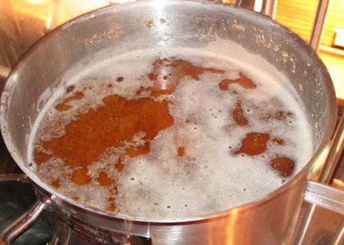 Заготовку доводят до кипения и варят 1,5 часа. При этом нужно следить, чтобы сусло не пригорело, поэтому его следует постоянно помешивать.
