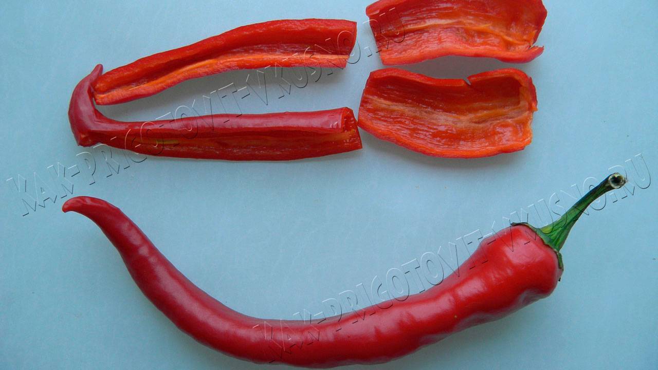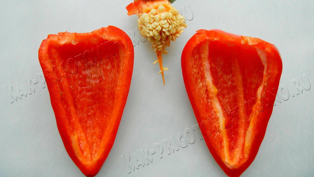 Разрезать напополам 15 штук спелого красного болгарского перца и удалить семена.