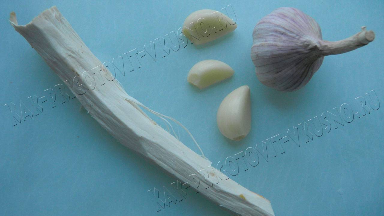 Также очищаем свежий чеснок. У меня крупный — я использовала зимний. Если у вас молодой и не очень ядреный, можете взять больше.