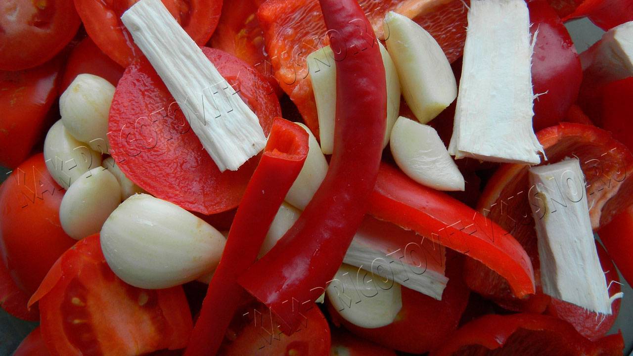 Очень вкусная хреновина с помидорами, чесноком, болгарским перцем рецепт Огонька без варки