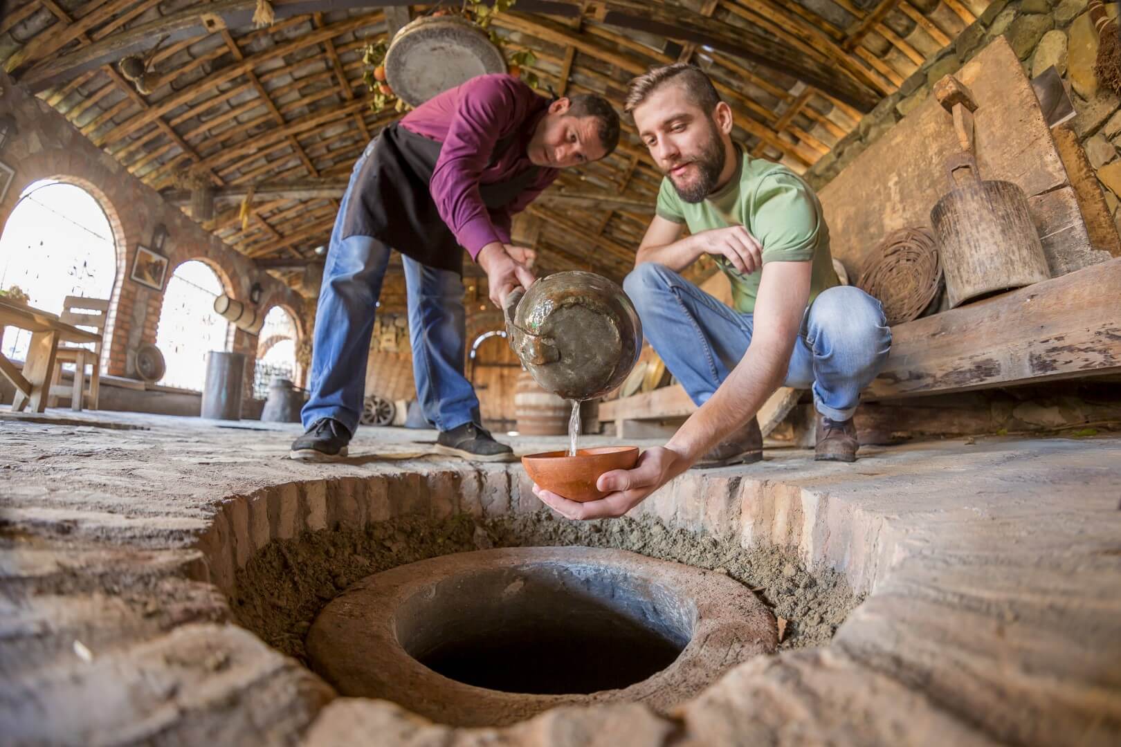 В давние времена и до сих пор вино на брожение заливают в глиняные емкости — квеври.