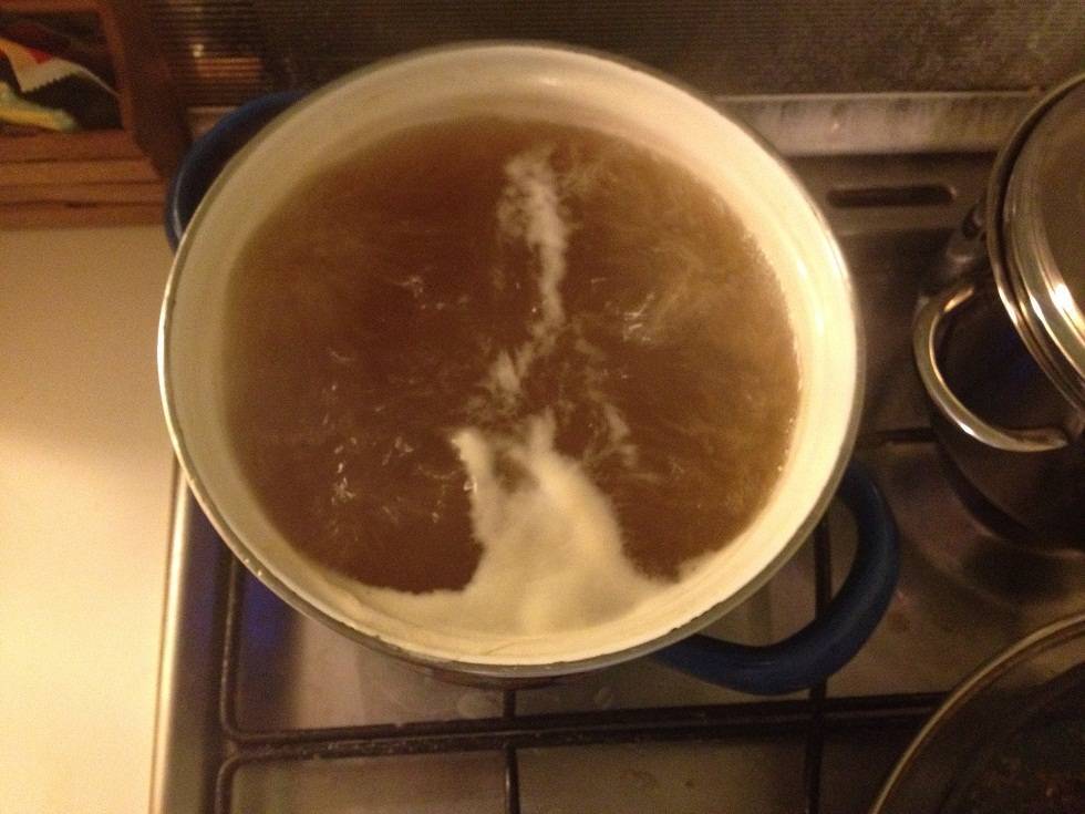 Но вначале надо закипятить воду, добавить в нее мед. Держим получившийся состав 15 минут на слабом огне. Жидкость необходимо постоянно помешивать, снимать пену. Как только указанное время проходит, медовуху убирают с огня. Теперь ее надо остудить до 30-40 градусов, перелить в другую посуду для дальнейшего процесса брожения.
