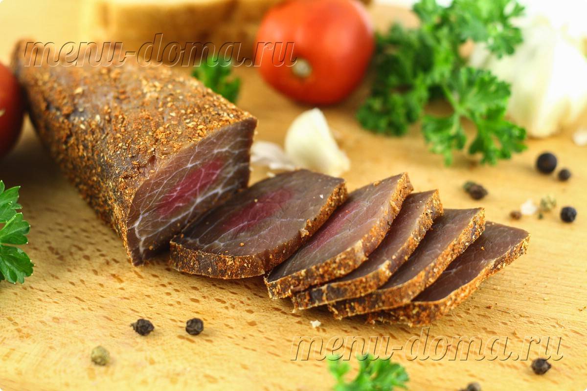 Сервировать такое вяленое мясо можно с вялеными или маринованными пряными фруктами, томатами, а также с соусами на основе сладкой горчицы. Ржаной хлеб обязателен, а бутылка красного вина только украсит трапезу настоящих гурманов.
