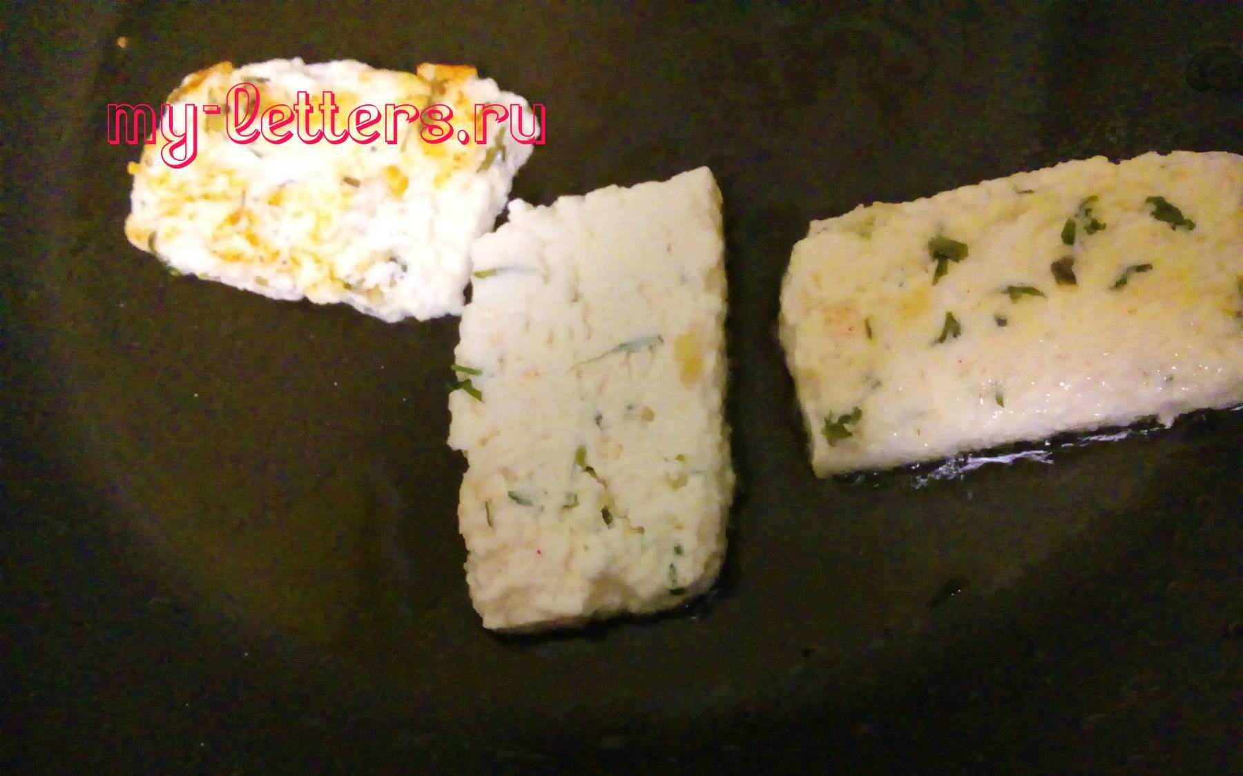 Наш творожный сыр, при условии, что он плотный, прекрасно обжаривается в масле до золотистой корочки, не расплывается, и по вкусу он очень похож на Кипрский сыр. Кстати, в Финляндии сыр с перцем и зеленью тоже продается.