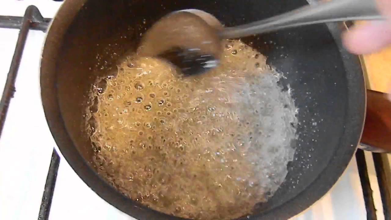 - Смесь постепенно темнеет. Не допустите перегрева. Малейшее отклонение – сахар подгорит!