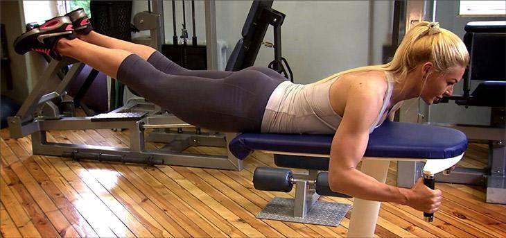 Кстати, именно данный вариант упражнения является универсально-реабилитационным для людей с проблемной спиной: из-за того, что тело лежит на тренажере, с позвоночника уходит нагрузка.