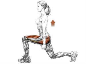 - Во время выполнения выпадов, кроме напряжения и сокращения мускулатуры, происходит её растяжка. Причём это касается не только ягодиц и мускулов задней части бёдер, но и передней. Квадрицепс растягивается во время отведения ноги назад в нижней точке, а растяжение бицепса бедра и ягодичной мышцы – при положении ноги впереди во время приседа;