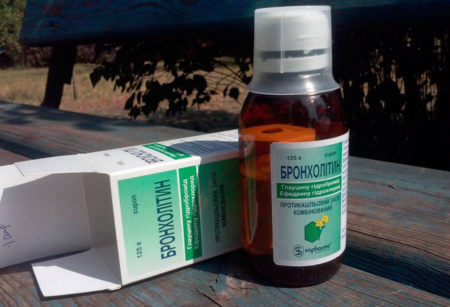 Препарат, выпускаемый под торговым названием «Бронхолитин», к середине 2000 годов стал пользоваться популярностью у спортсменов, занимающихся на любительском уровне в различных дисциплинах. Главной особенностью препарата является цена, которая полностью соответствует эффективности этого средства. Бронхолитин выпускается в виде сиропа, фасуемого в стеклянные флаконы по 125 мл. Активными веществами являются такие компоненты, как эфедрин и глауцин. В медицинских целях препарат принимают как бронходилатирующее, противокашлевое средство комбинированного действия.