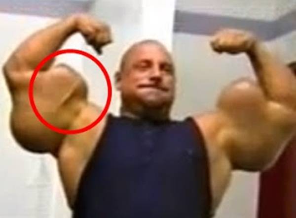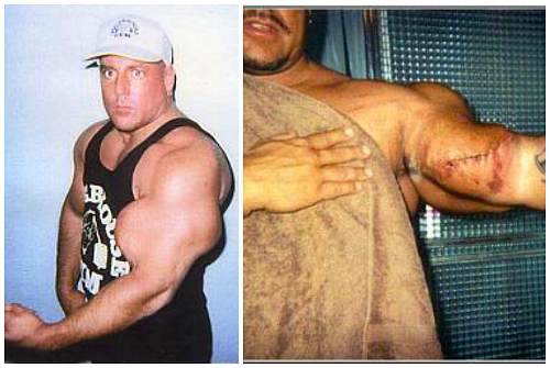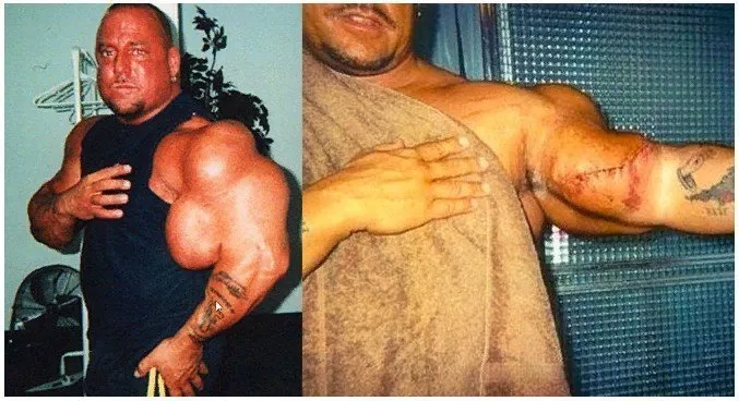 Самодеятельность привела к тому, что произошел разрыв мышцы. «Поролоновые мускулы» буквально разорвали кожу на руке, а из раны текли реки сукровицы с гноем, заливая тело и пол. «Взрыв бицепса» надолго уложил атлета на больничную койку. Хирурги были вынуждены в экстренном порядке удалять зараженные ткани. После мучений его руки, покрытые сетью шрамов, выглядят истерзанными, а о былых объемах пришлось забыть навсегда.