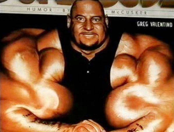 В погоне за огромными бицепсами Грег Валентино готов быть пойти на многое. Размер бицепса Арнольда Шварценеггера составлял около 55 см, но Грег решил не просто превзойти Арни, а сделать свои руки просто нечеловеческими. Ему это удалось, размер его бицепса составил около 69 см. Грег Валентино серьезно увлекся культуризмом еще в 80-х, а в лучшие годы имел не такой уж и маленький бицепс (47см). Вначале 90-х он открыл для себя «Синтол», именно благодаря большим дозам этого препарата он довел свои руки до такого состояния.