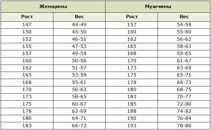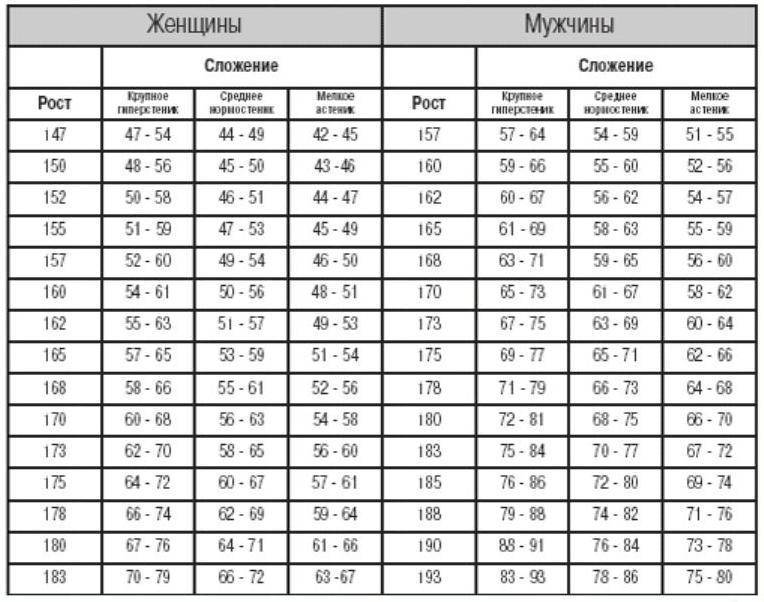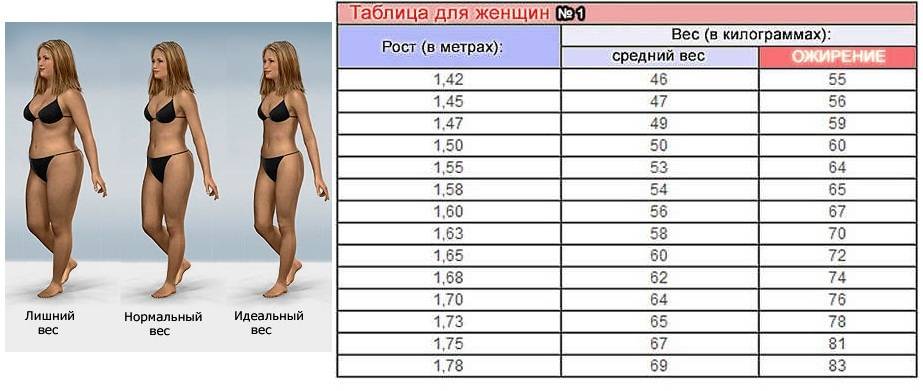 у каждой девушки индивидуальные. Для определения идеальной массы тела на помощь
