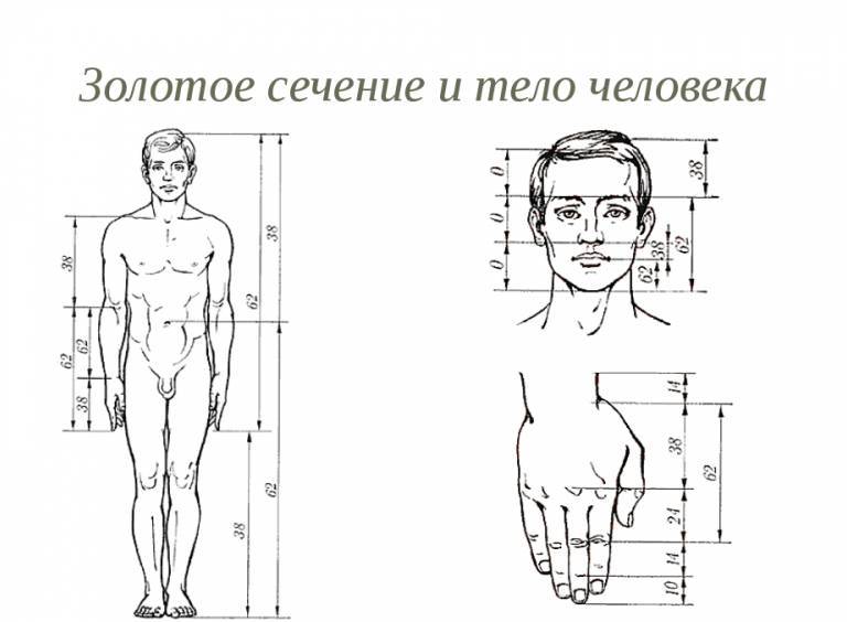 Человеческий скелет выдержан в пропорциях, очень близких к золотому сечению. Чем ближе телосложение к подобному соотношению, тем более правильным, соответствующим идеалу красоты оно считается.