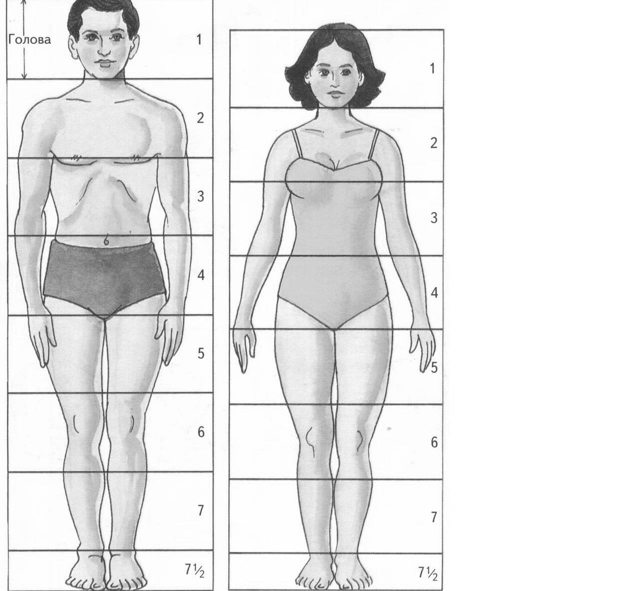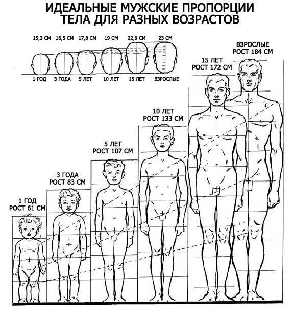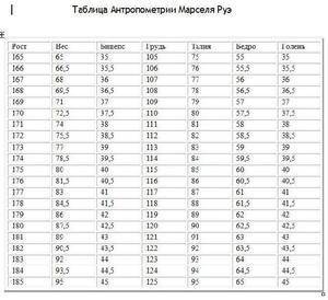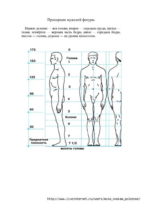 Ниже приведены таблицы, в которых собраны сведения о пропорциях мужского тела. Они составлены на основании наблюдения за спортсменами в течение многих лет.