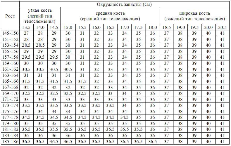 - Тонкокостный тип – 14,5 см у женщин см, у мужчин 18 см;