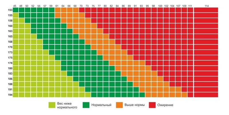 четкими характеристиками: вес ниже нормы, оптимальный, лишний вес, ожирение,