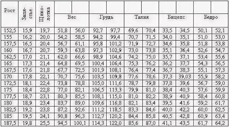Важными показателями совершенного тела сегодня являются: возраст, рост и окружность запястья. По сути, это замер кости, от чего зависит лёгкий, тяжёлый и средний тип сложения.