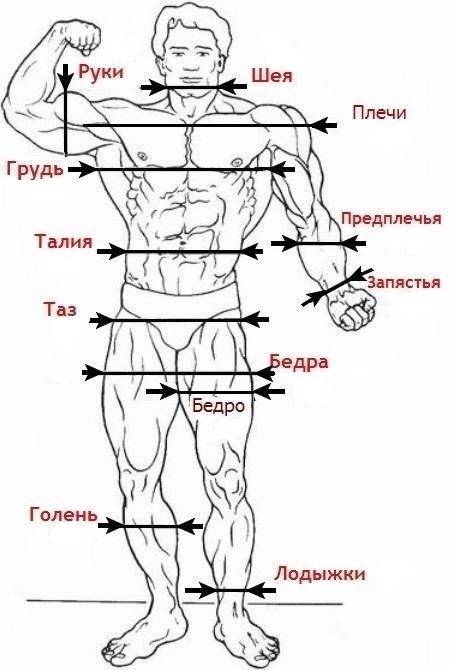 | Плечо | Рука сгинается в локте, бицепс и трицепс переходят в напряженное состояние; в этом положении измерить наиболее широкую окружность |