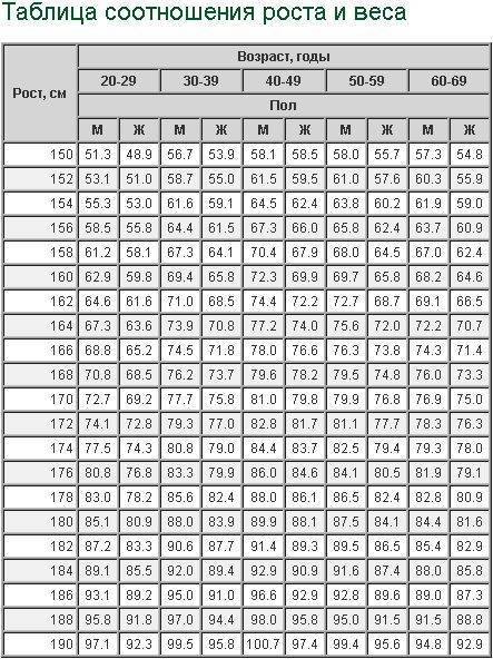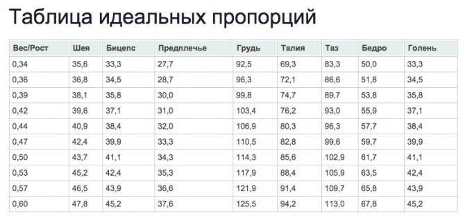 Ориентируясь на табличные показатели, следует учитывать то, что коэффициент веса и роста находится путем деления этих двух параметров. У атлета с весом в 100 килограммов и ростом в 180 см, он составляет 0,555.
