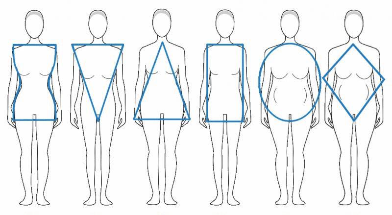 картинка с типами фигуры и телосложением. От базовых параметров: вес, рост,