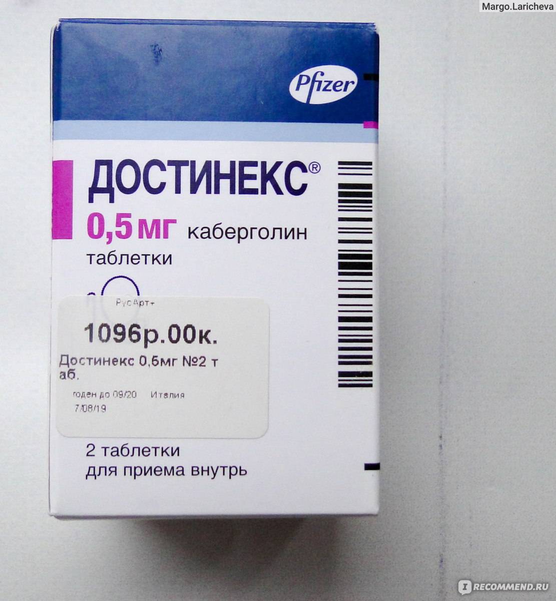 - Достинекс (1600-3000 рублей за 8 таблеток по 0.5 мг) — оригинальный препарат, который появился на рынке в 1985 году.