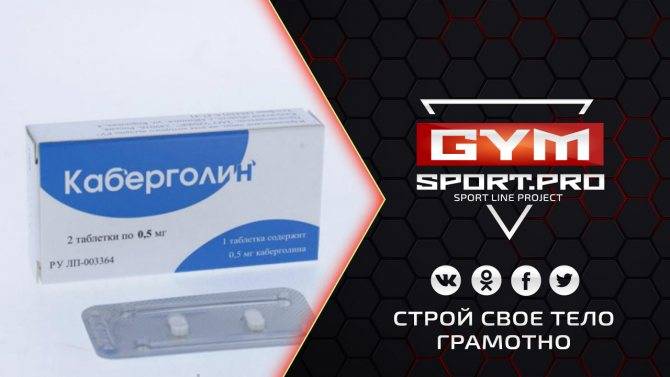Несмотря на свою «медицинскую основу», каберголин активно применяется в бодибилдинге. Как правило, он назначается для подавления негативных проявлений стероидов. Основное действие направлено на запуск специальных рецепторов (D2) в клетках гипофиза. Назначение таких рецепторов — выработка дофамина, подавляющего выработку пролактина.