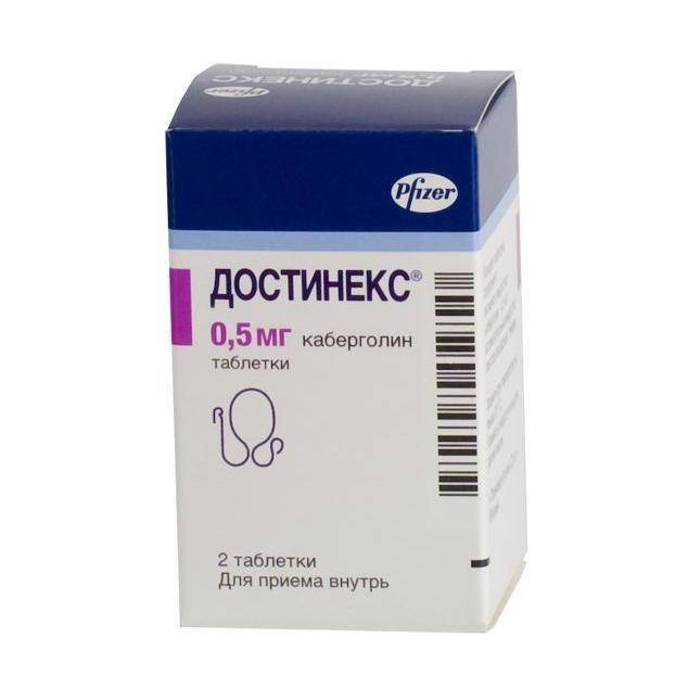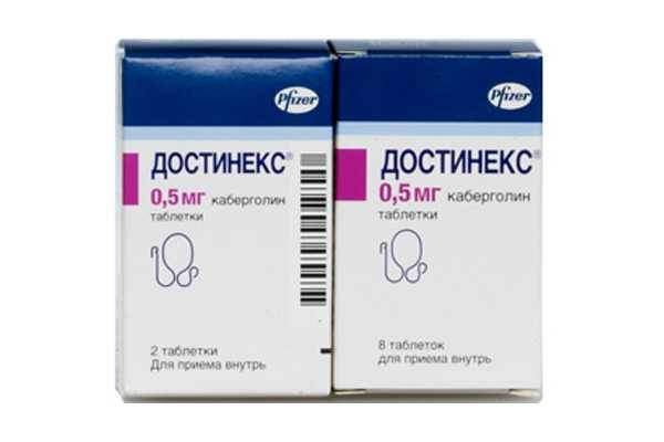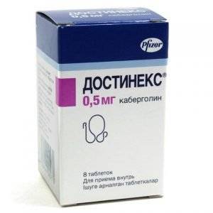 - Достинекс (1700-1900 рублей за 8 таблеток по 0.5 мг)
