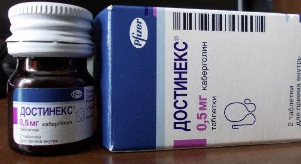 - Достинекс (1500-2000 рублей за 8 таблеток по 0.5 мг)