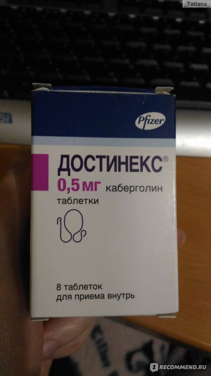 - Ещё один продукт от итальянцев и компании Пфайзер – «Достинекс». Является одним из самых популярных в мире. В упаковке 8 таблеток, в каждой по 0,5 миллиграмм вещества.
