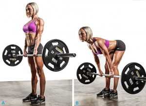 - Становая тяга. Если вы хотите знать, как накачать широкую спину в домашних условиях, то при наличии штанги вы можете выполнять такое отличное движение, как становая тяга. В то же время упражнение можно делать и с гантелями. Начинающие атлеты могут смело начинать именно с этого спортивного снаряда, так как пока будет возможность прогрессировать нагрузку, растут и мускулы. Примите положение стоя, поставив ноги на уровне плечевых суставов. Коленные суставы необходимо несколько согнуть, а спина имеет естественный прогиб в области поясницы. Гантели находятся в руках и опущены вниз. Из этой начальной позиции начинайте наклонять корпус вперед до его параллели с землей. Спортивные снаряды должны перемещаться близко к телу. Достигнув конечного положения траектории, начинайте движение в обратном направлении.
