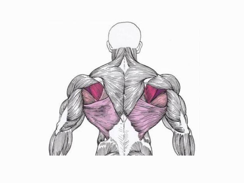 Ромбовидные располагаются сверху под трапецией. Имеют форму ромба и работают при сведении лопаток и отведении их назад. Силовой тренинг для этой группы заключается в подтягиваниях обратным хватом, тяге гантелей или грифа к животу.