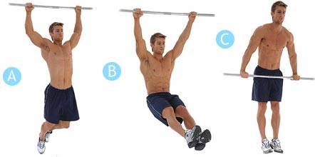 Одним из эффективных упражнений для образования широкой спины в домашних условиях являются подтягивания на турнике. Беремся за турник широким хватом, ладони шире плеч, большой палец не обхватывает перекладину. Подтягиваемся так, чтоб положение подбородка было параллельно тренажёру, а при опускании корпуса вниз полностью выпрямляем плечевой и локтевой суставы.