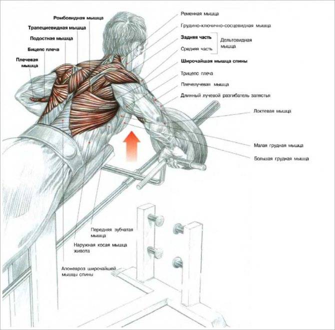 Чтобы качать спину правильно, и не задействовать другие мускулы, обращайте внимание, чтоб во время подтягивания вверх не было прогибов в позвоночнике