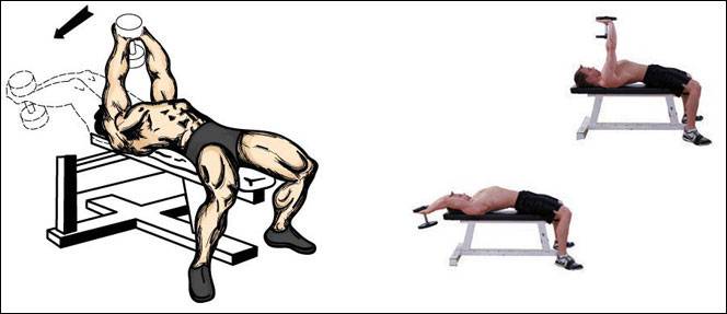 Большая круглая мышца спины располагается под самыми крупными мускулами. Как правило, она работает совместно с «крыльями», поэтому любые упражнения на широчайшие, включают в работу указанную группу мускул. Но так, как она отвечает за оттягивание рук вверх и назад, притягивание их к туловищу можно добавить выполнение пуловера лежа.