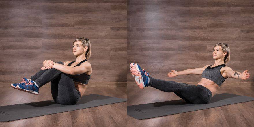 Выполнение: лягте на спину, ноги согните в коленях, не отрывая стопы от пола. Выполняйте подъём туловища, максимально тянитесь за руками вверх и вперёд. Следите, чтобы мышцы пресса напрягались максимально насколько возможно. Начинайте с 20–30 повторов, потом постепенно увеличивайте до максимально возможного для вас количества.