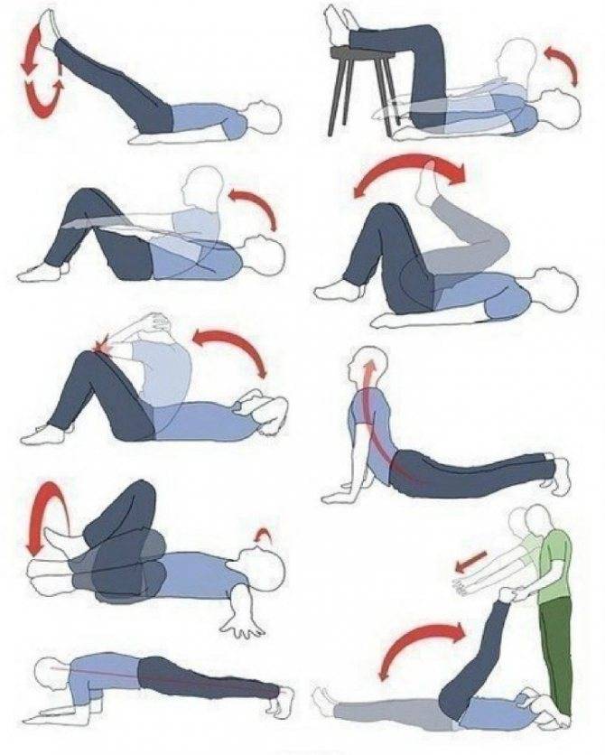 - Подъем ног лежа на полу.
