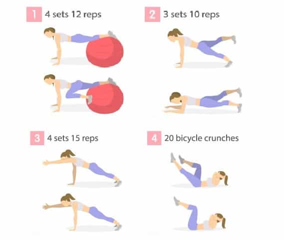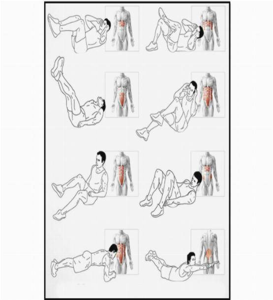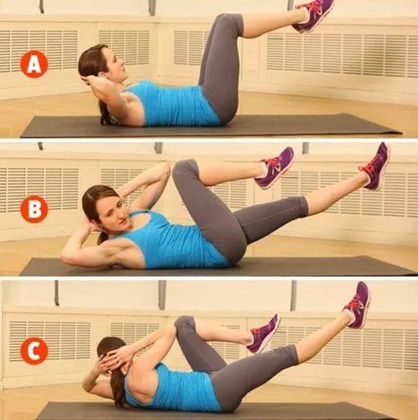 - Велосипед. o Скручивания с медицинским мячом.