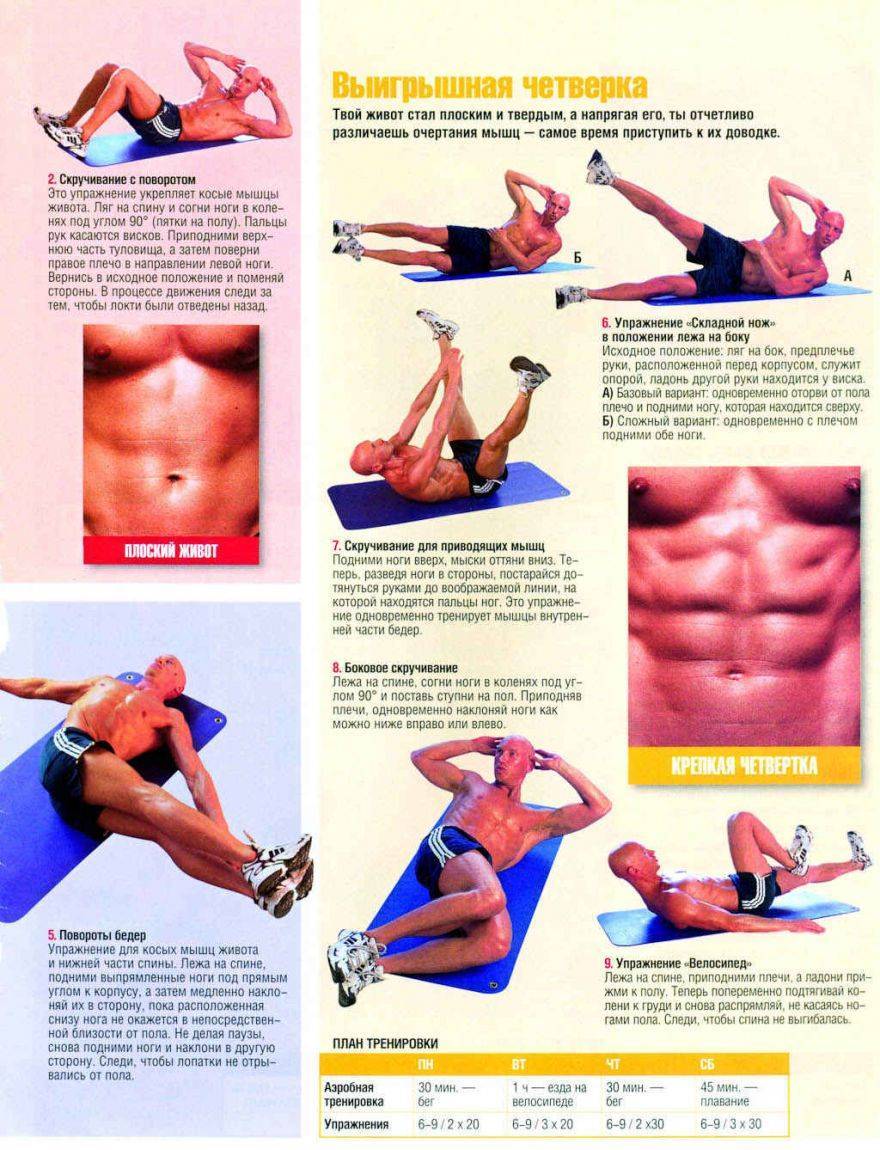 Несколько простых программ тренировок на пресс для начинающих.