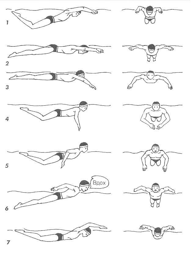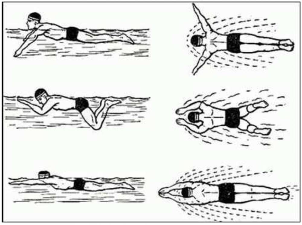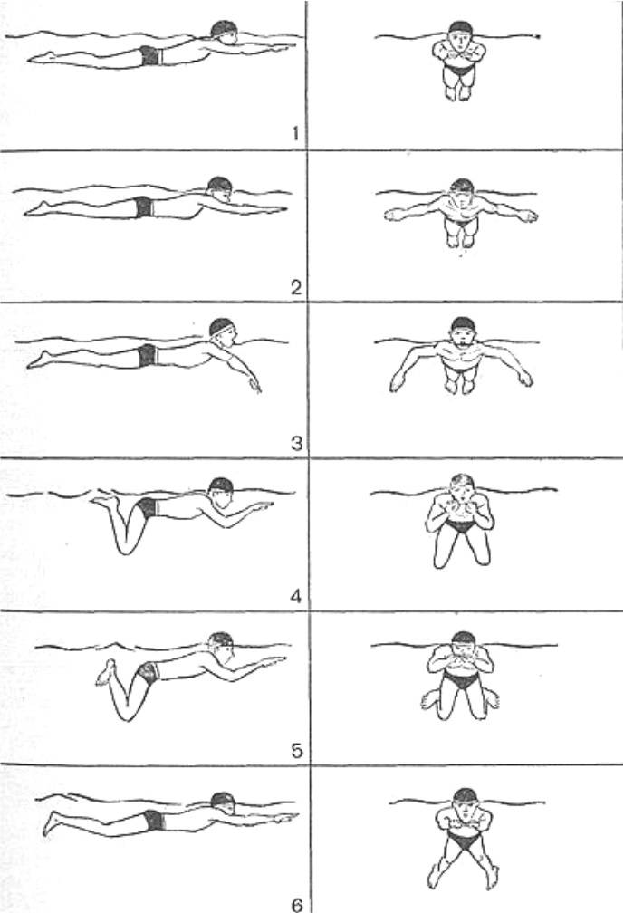 Это стиль плавания предполагает одновременные движения рук и ног. Конечности при этом стиле остаются в воде, а тело всегда параллельно водной поверхности. При симметричном движении рук и ног движение вперед происходит с наибольшей эффективностью и с минимальными усилиями.
