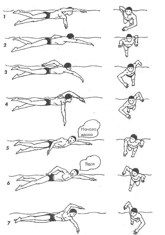 1. Делать вдох ртом, когда голова находится над поверхностью воды.