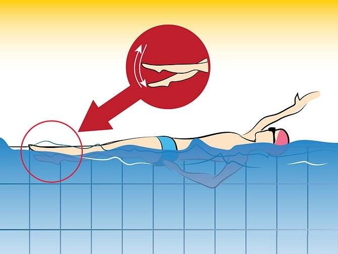 Руками держитесь за бортик, тело оставьте в лежачем положении. Выполняйте движения ногами вверх-вниз с той же целью: появление брызг.
