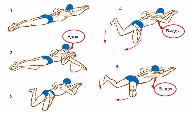 • разогнуть ноги, совершить резкий толчок об бортик, вытянув руки вперед, так чтобы корпус оказался на груди, а не на спине