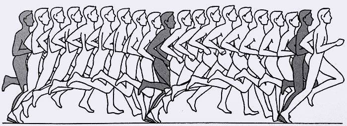 Спринт не только активно расходует гликоген, но и способствует усилению кровотока к мышцам, который сопровождает интенсивное окисление жиров с одновременным выделением энергии, запасаться которая начинает уже в виде углеводов. Интервальный бег продолжительностью 20-30 минут выматывает бегуна полностью, а жиры продолжают сжигаться.