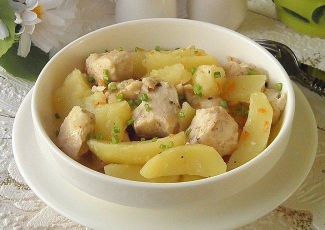 - Куриная грудка с картошкой в мультиварке готова.