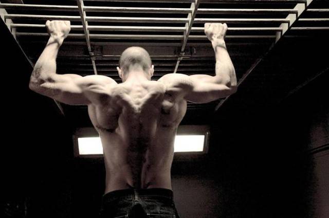 - Подтягивания с динамичным рывком между перекладинами, находящимися на разной высоте — повторить туда-обратно 8 раз
